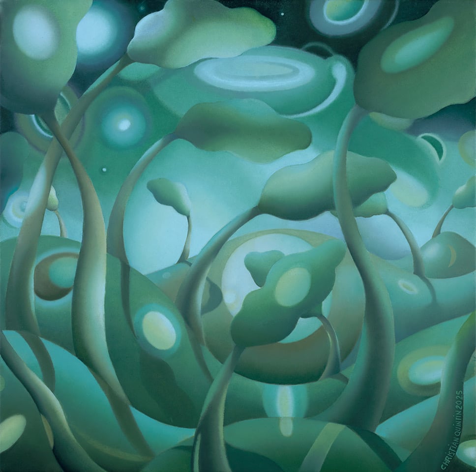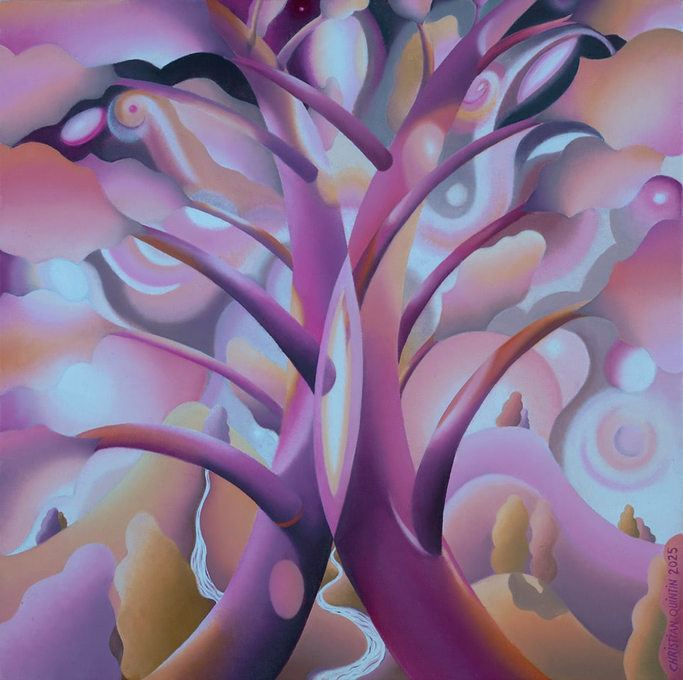 Christian Quintin doesn’t paint what he sees. He paints what you remember feeling—before you had words for it. His images arrive like déjà vu: a tree that’s also a dancer, a face made of rooms, a landscape that breathes.